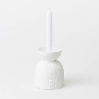 Porcelana branca, esmaltada por dentro, não vidrada por fora e parcialmente relevada.