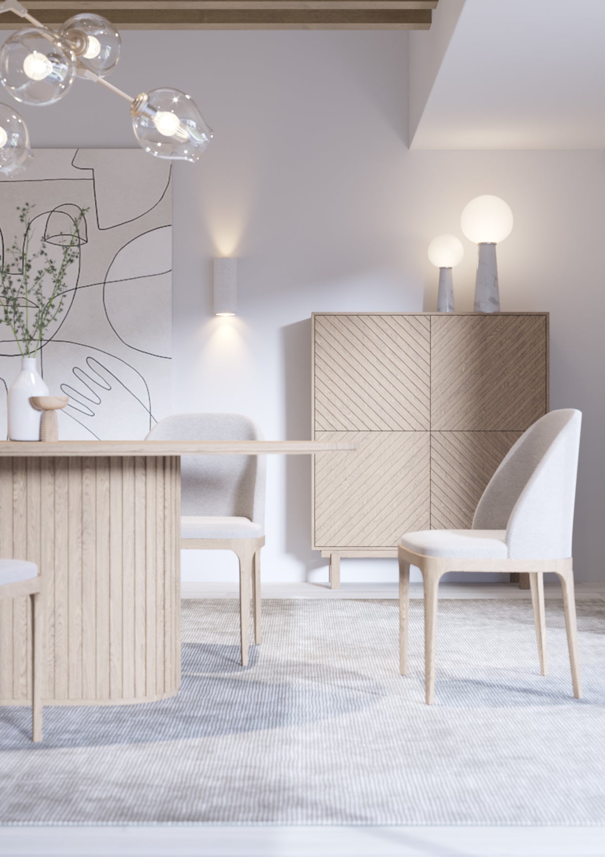 Linha Fado, criada com inspirações em mundos opostos mas unidos pela valorização da madeira. Esta linha tem um design Nórdico e uma arquitetura Japonesa.