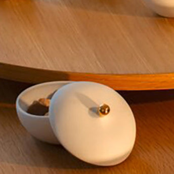 Design: Sowa. Tampa com decalque dourado, tigela interna.